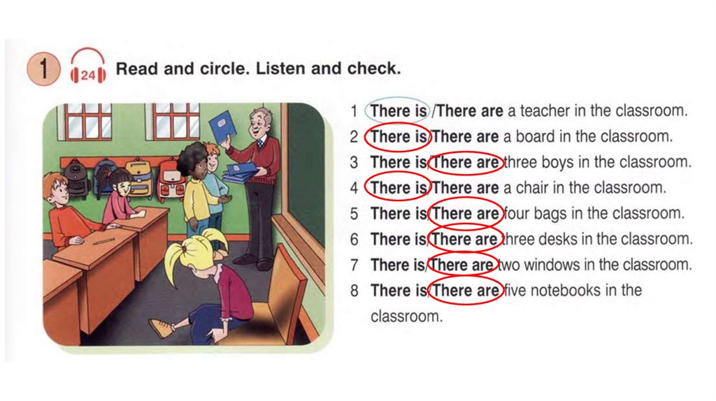Мы используем оборот There is / There are, чтобысказать о том, что что-то есть/находится.