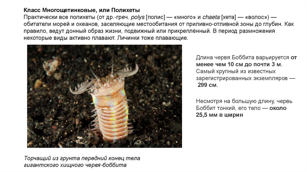 Класс Многощетинковые, или ПолихетыПрактически все полихеты (от др.-греч. polys [полис] — «много» и chaeta [хета] — «волос») —
