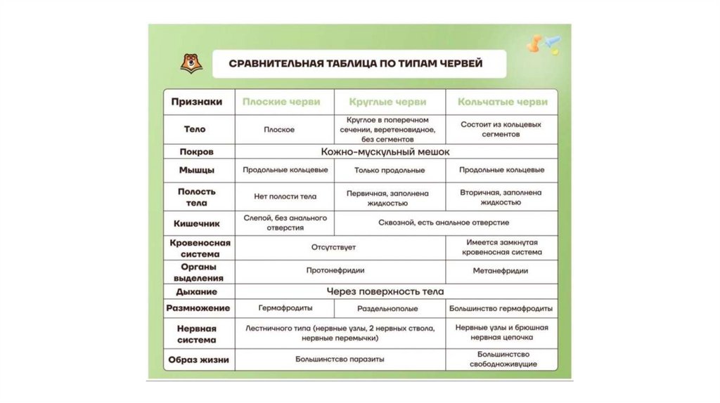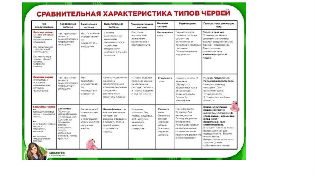 (дождевые черви, пиявки).