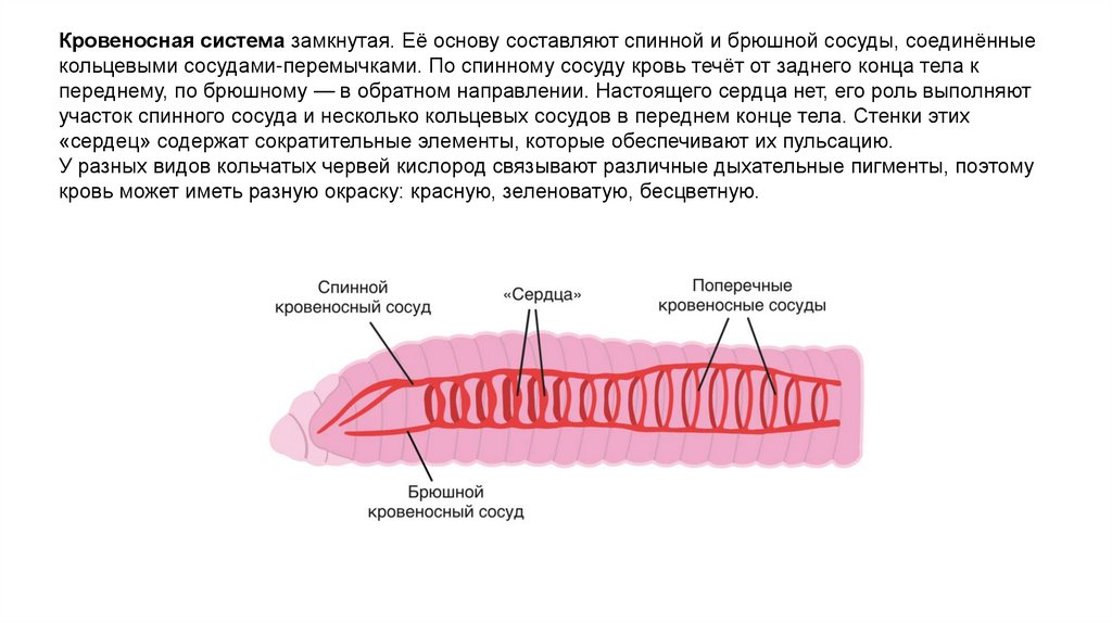 участок спинного сосуда и несколько кольцевых сосудов в переднем конце тела. Стенки этих