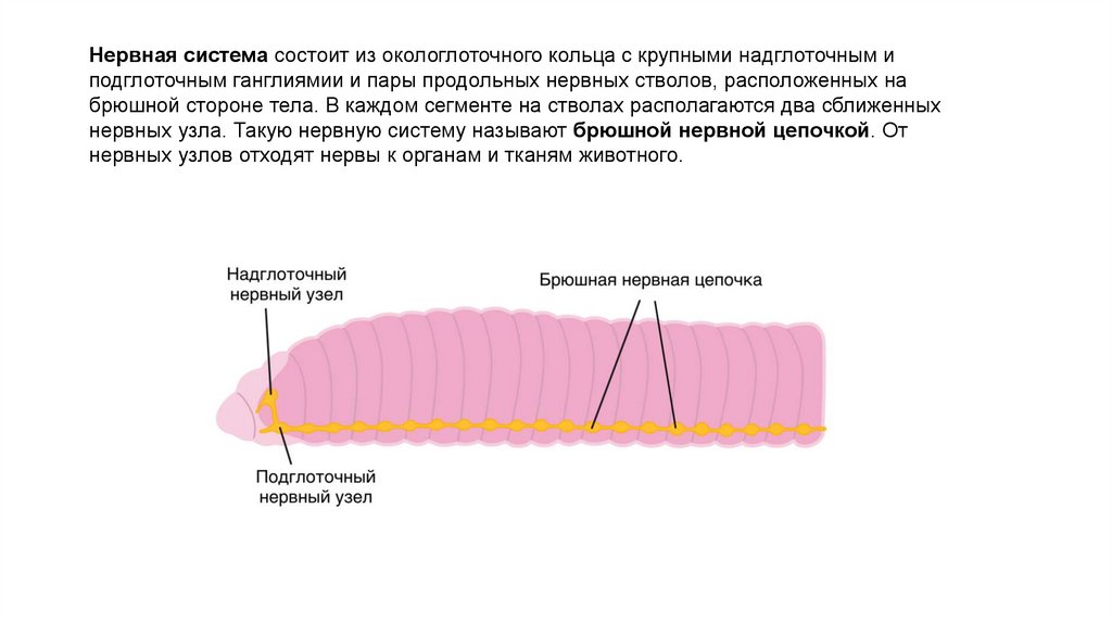 нервных узла. Такую нервную систему называют брюшной нервной цепочкой. От