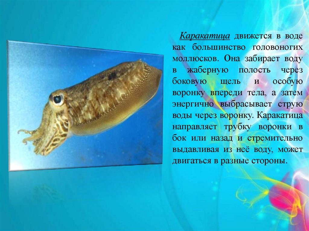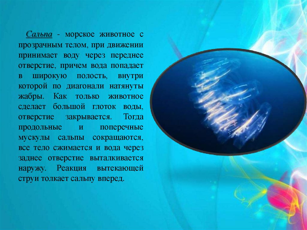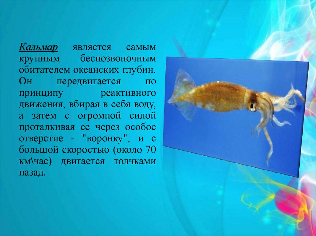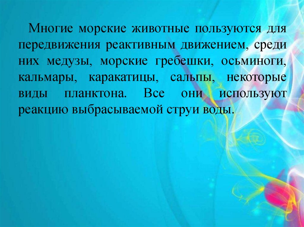 Многие морские животные пользуются дляпередвижения реактивным движением, среди