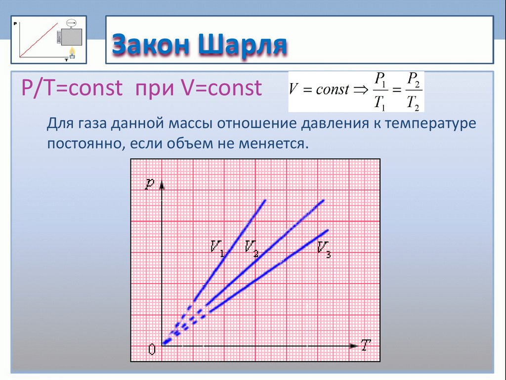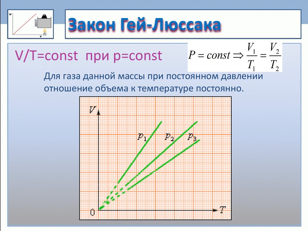 Закон Гей-ЛюссакаV/Т=const при р=const