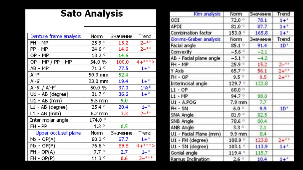 Параметры наклона и положения зубов: