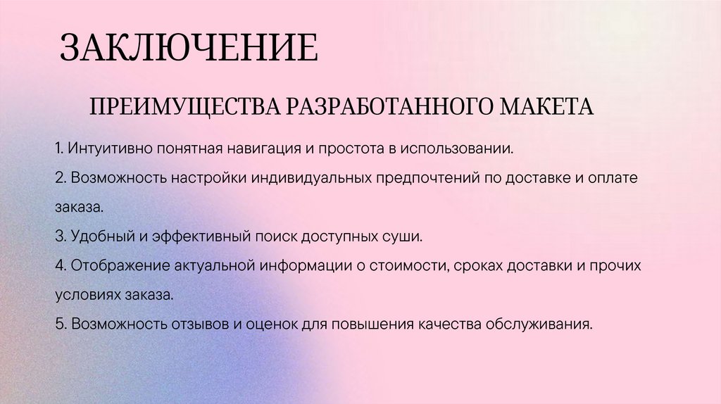 ЗАКЛЮЧЕНИЕПРЕИМУЩЕСТВА РАЗРАБОТАННОГО МАКЕТА