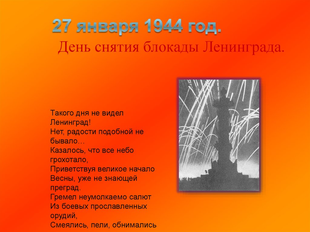 День снятия блокады Ленинграда.Такого дня не видел