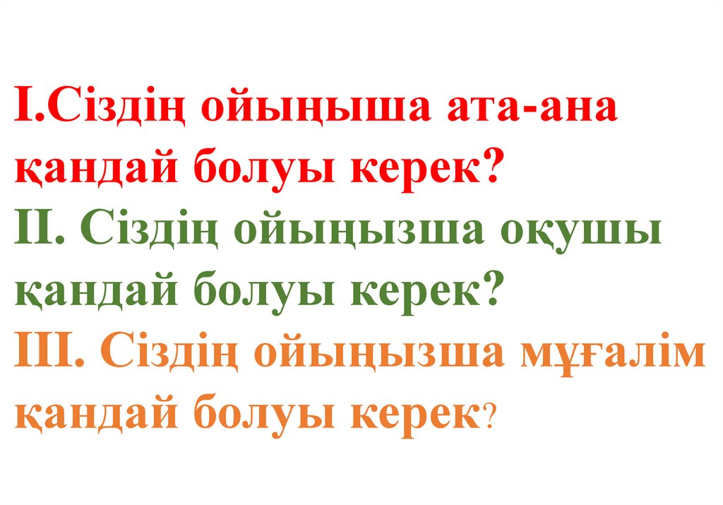 I.Сіздің ойыңыша ата-анақандай болуы керек?