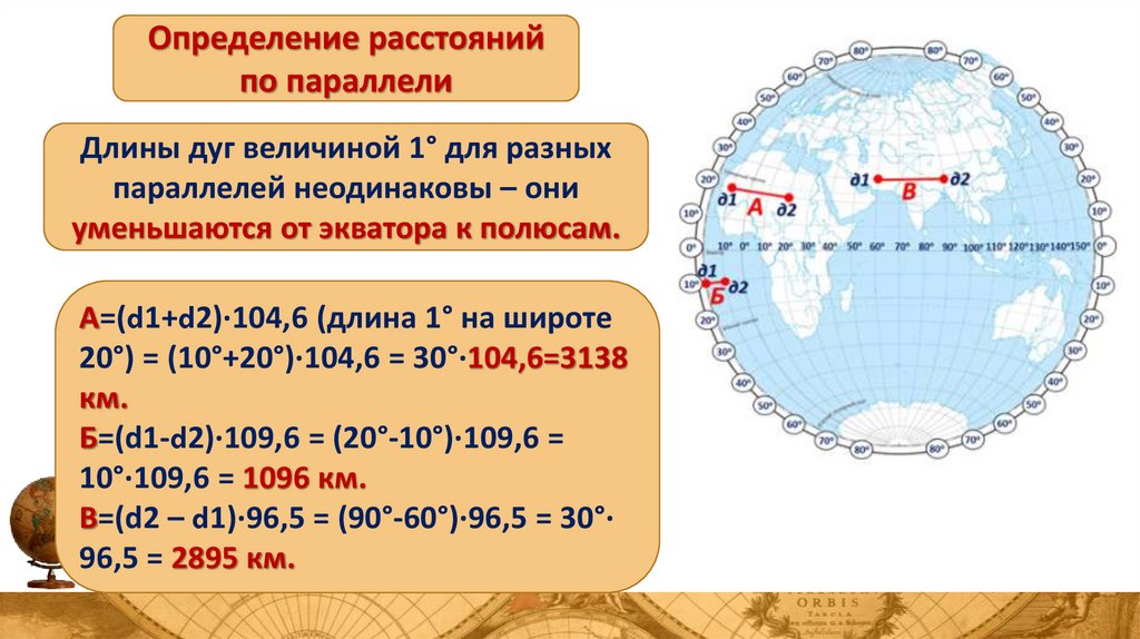 Определение расстоянийпо параллели
