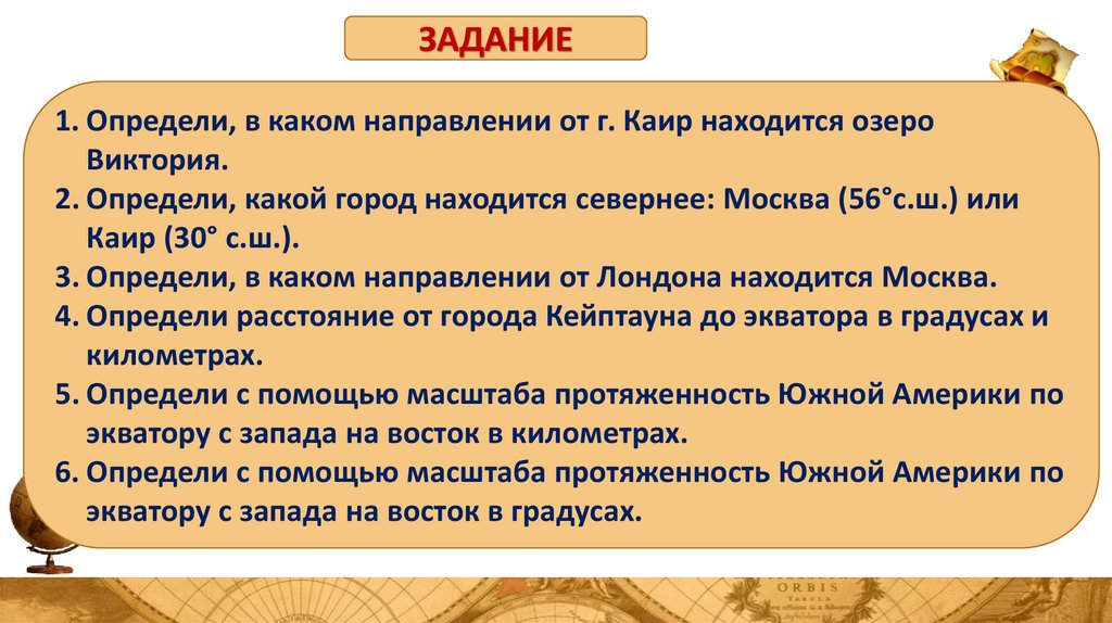 ЗАДАНИЕ1. Определи, в каком направлении от г. Каир находится озеро