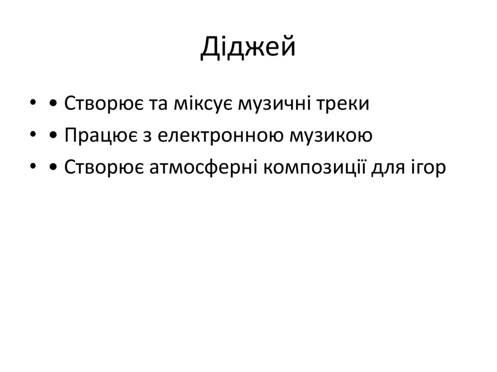 Діджей• • Створює та міксує музичні треки
