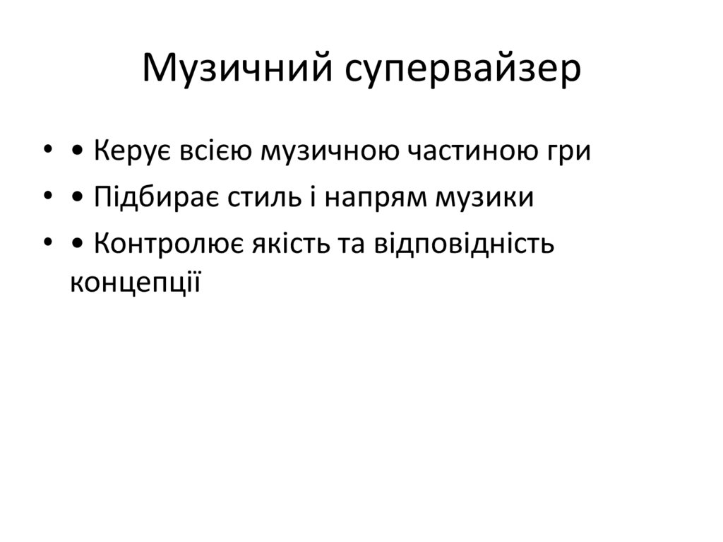 Музичний супервайзер• • Керує всією музичною частиною гри