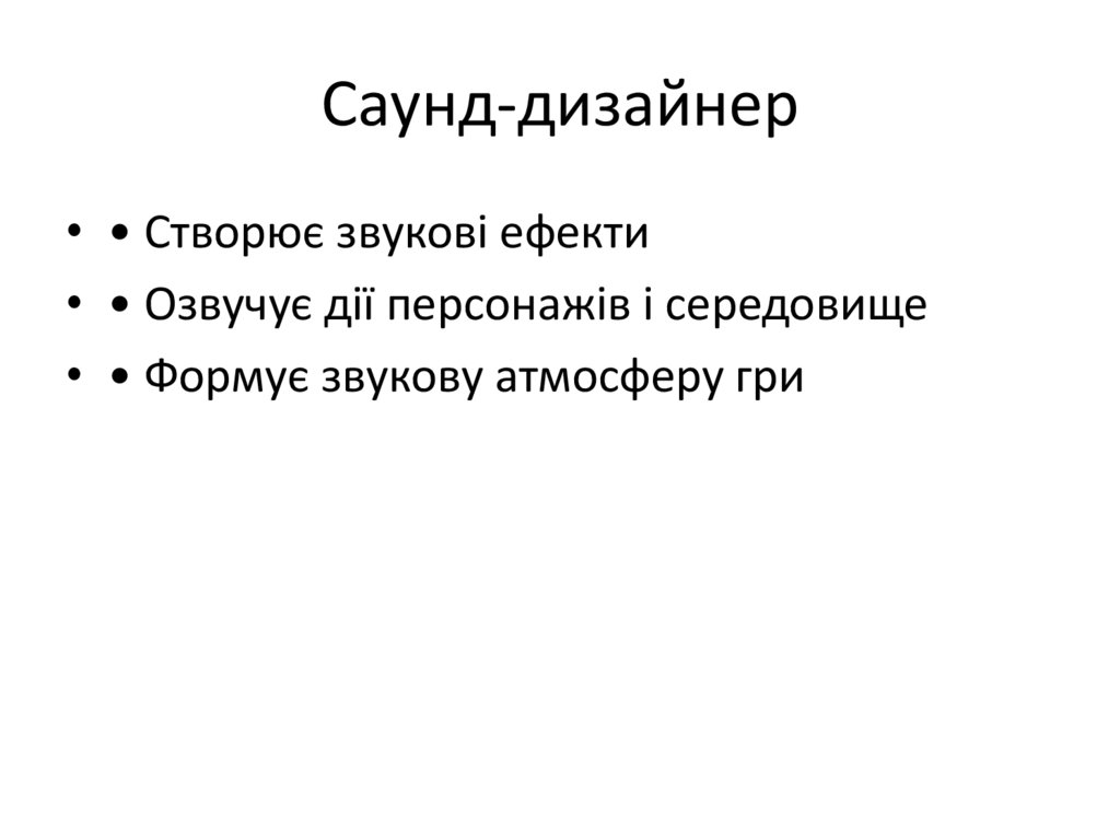 Саунд-дизайнер• • Створює звукові ефекти