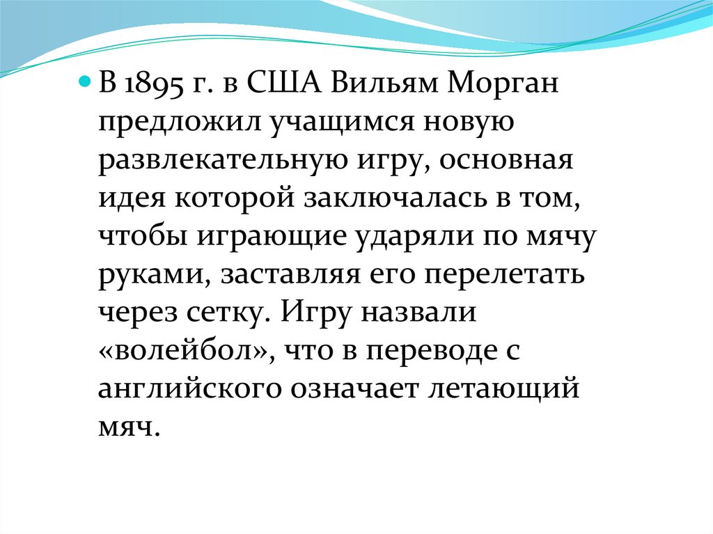 В 1895 г. в США Вильям Морганпредложил учащимся новую