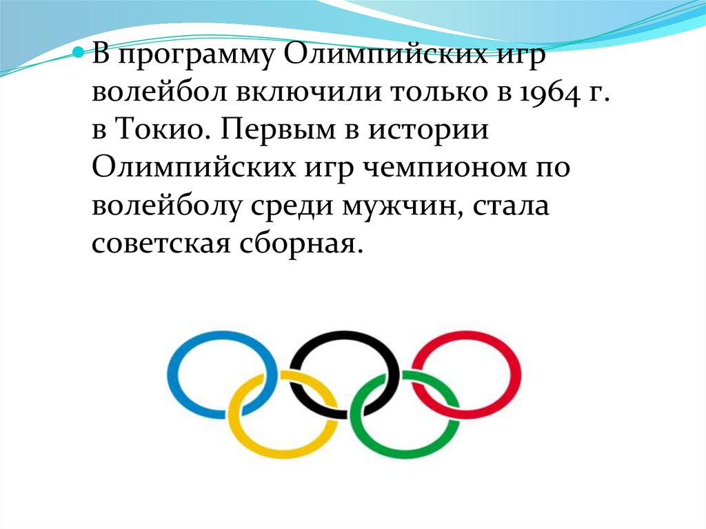 В программу Олимпийских игрволейбол включили только в 1964 г.