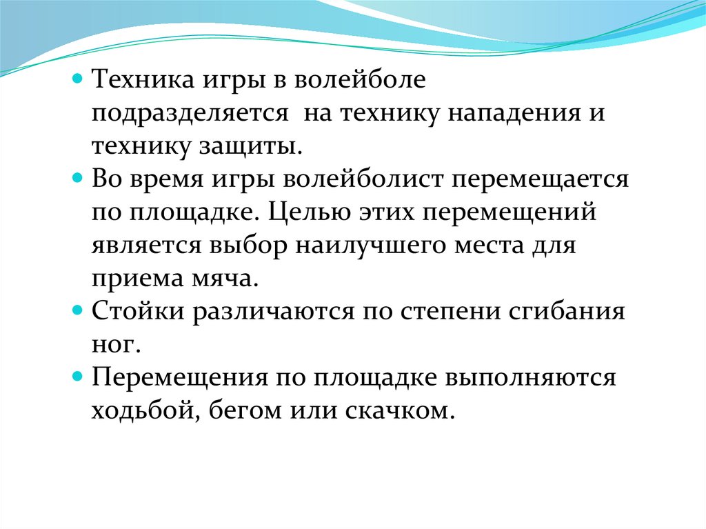 Техника игры в волейболеподразделяется на технику нападения и