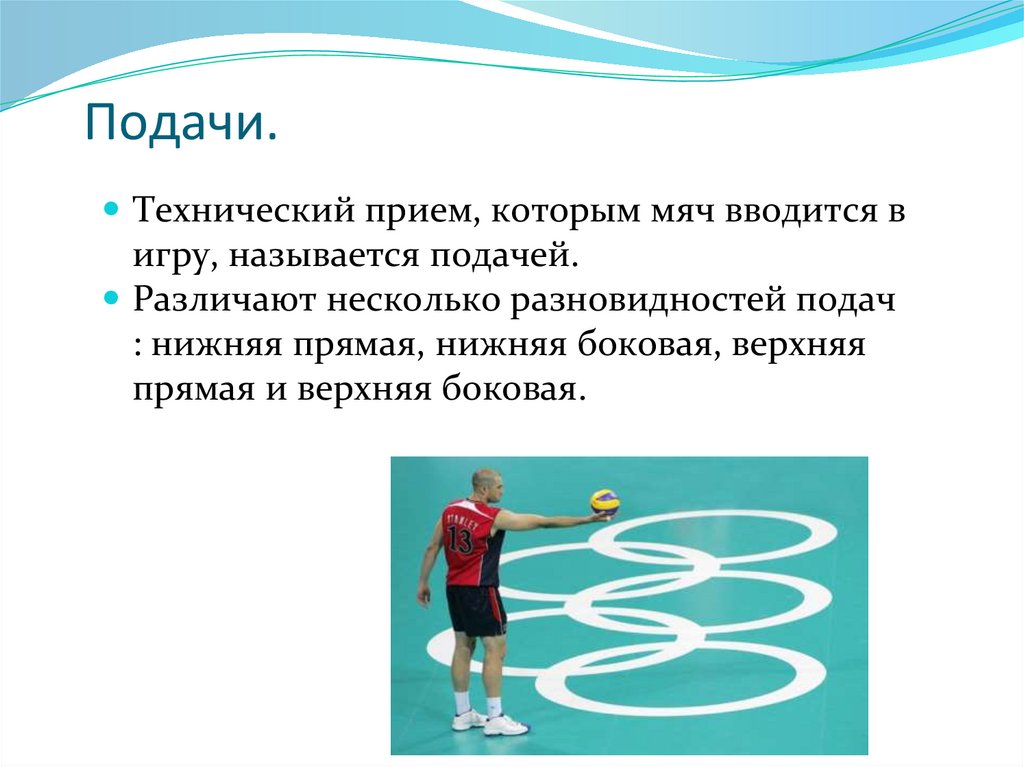 Подачи.Технический прием, которым мяч вводится в