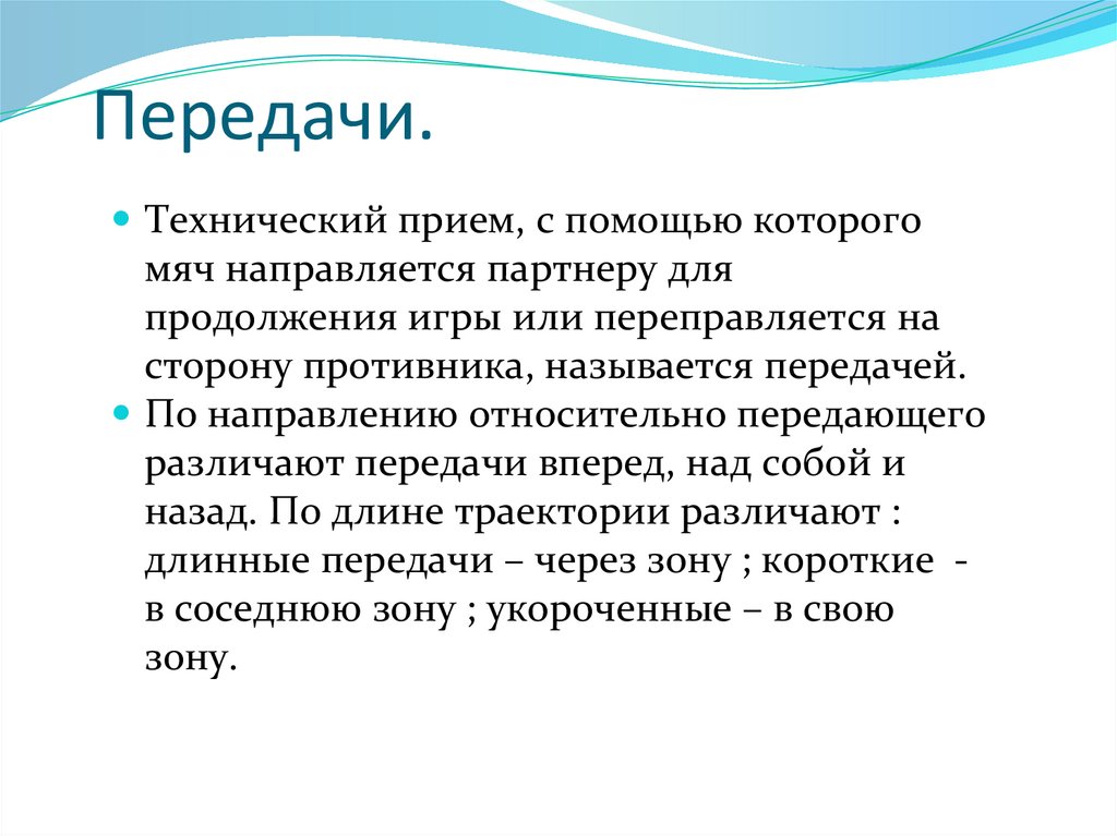 длинные передачи – через зону ; короткие в соседнюю зону ; укороченные – в свою