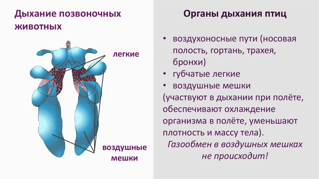 мешки (легкие) и трахеи,