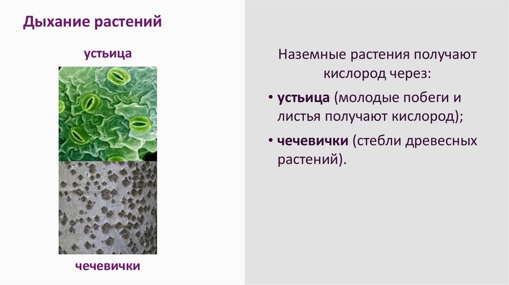 листья получают кислород);