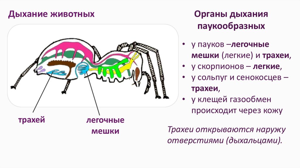 • у пауков –легочные