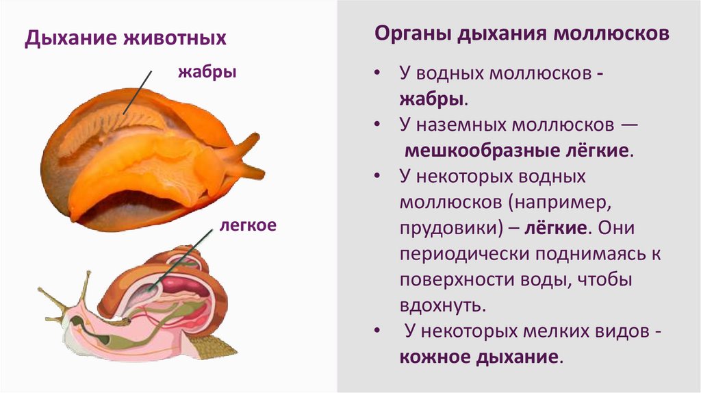 Дыхание животныхОрганы дыхания моллюсков