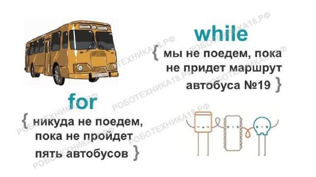 В этом цикле проверяется условие, и если оно истинно, то выполняется набор операторов внутри телацикла. Обязательно убедитесь, что изменяете переменную, от которой зависит условие, иначе цикл
