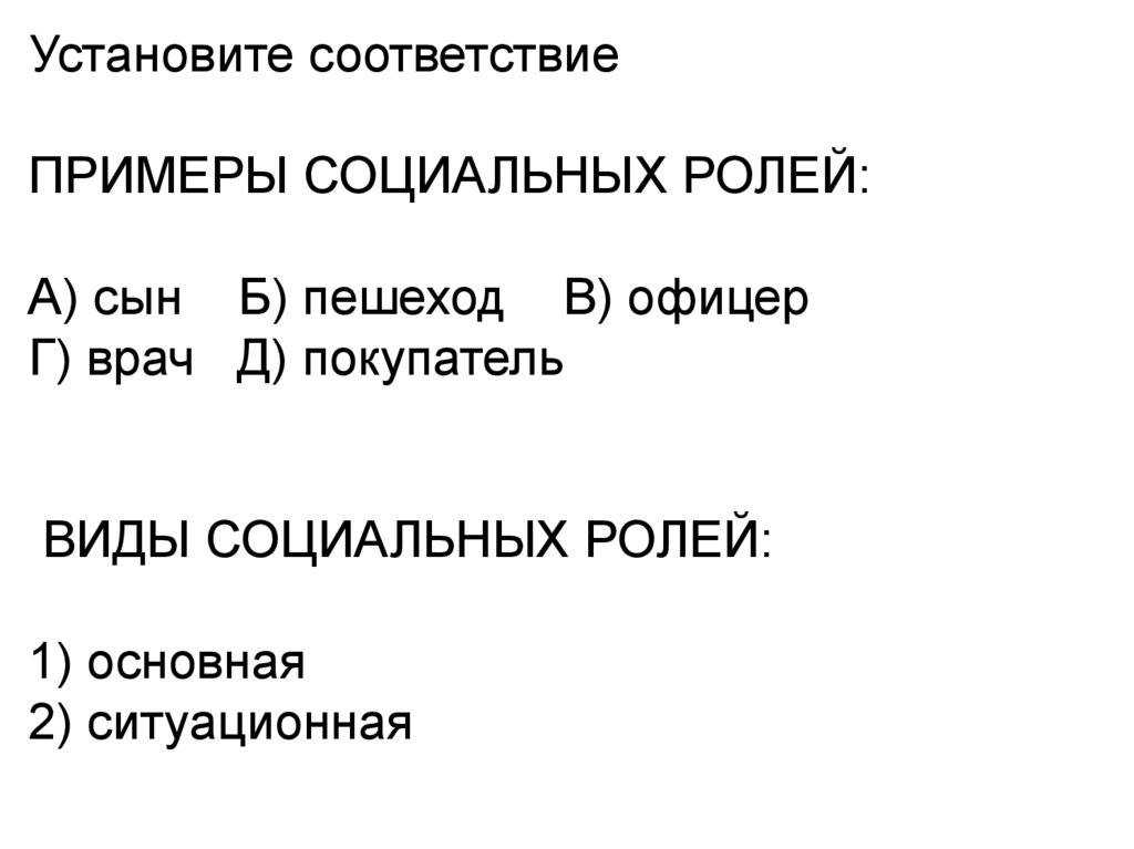 Установите соответствиеПРИМЕРЫ СОЦИАЛЬНЫХ РОЛЕЙ: