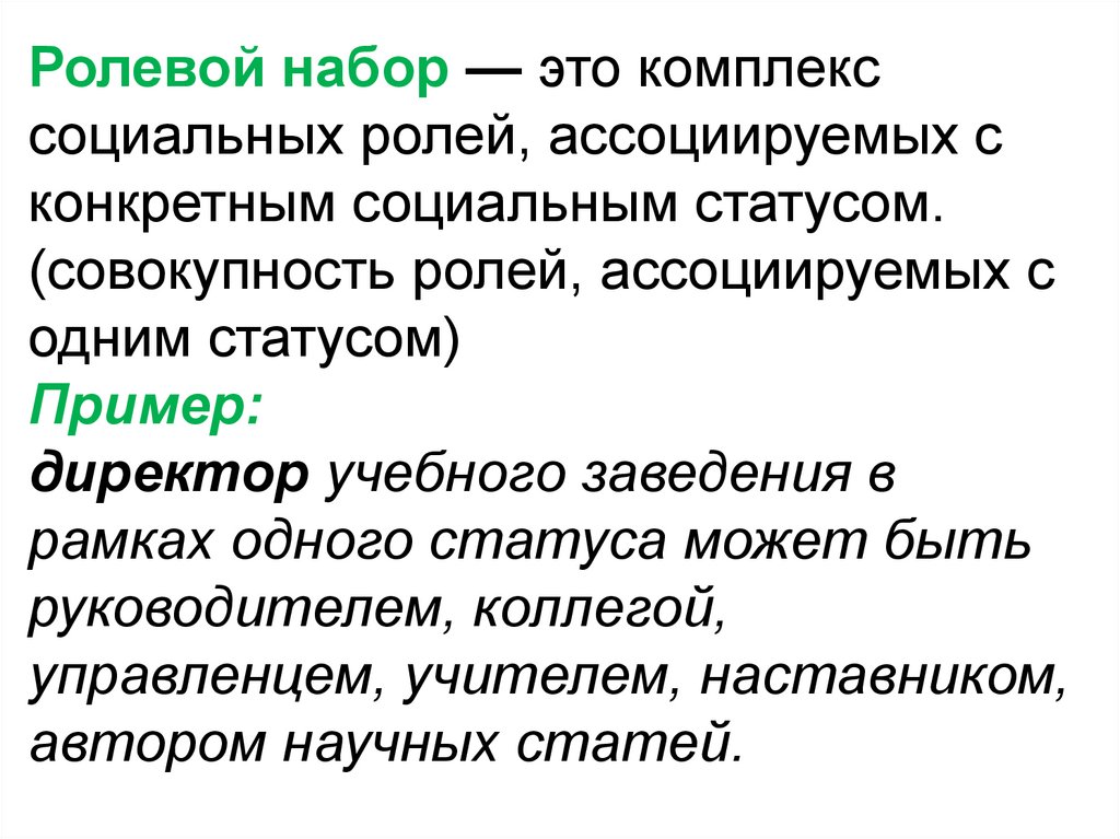 Ролевой набор — это комплекссоциальных ролей, ассоциируемых с