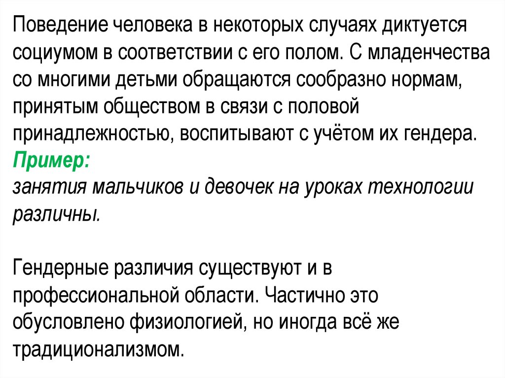 Поведение человека в некоторых случаях диктуетсясоциумом в соответствии с его полом. С младенчества