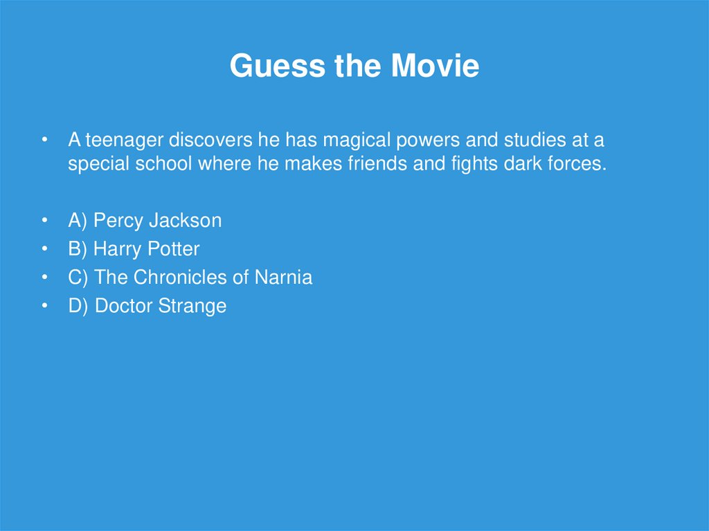 Guess the Movie• A teenager discovers he has magical powers and studies at a