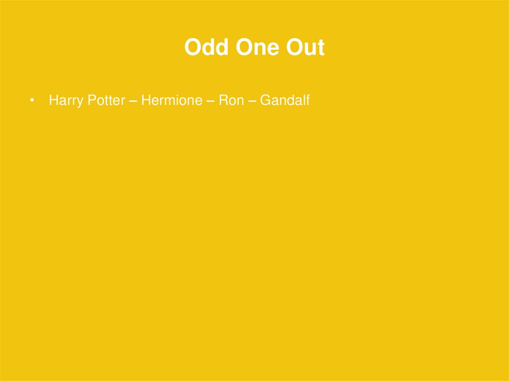 Odd One Out• Harry Potter – Hermione – Ron – Gandalf