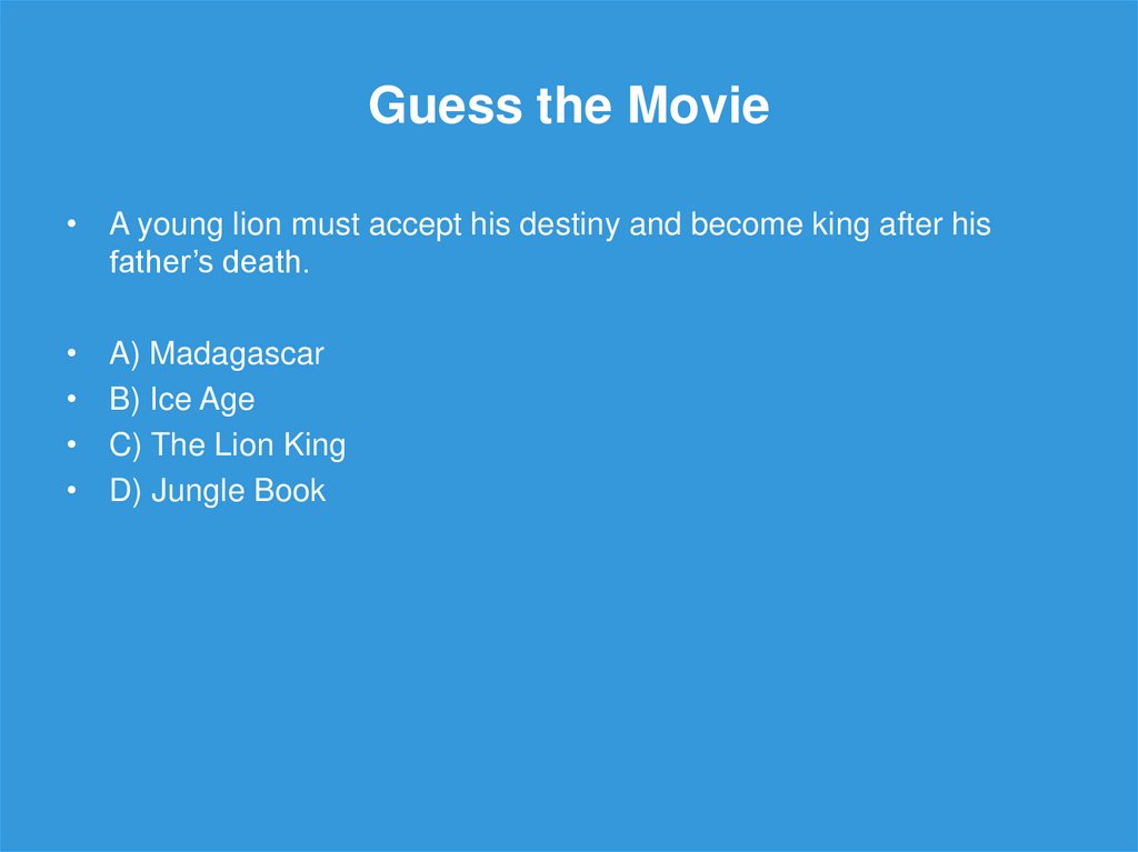 Guess the Movie• A young lion must accept his destiny and become king after his