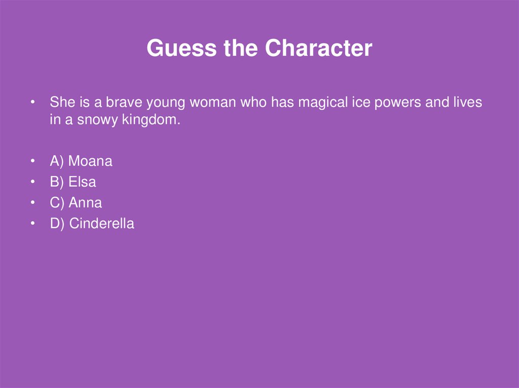 Guess the Character• She is a brave young woman who has magical ice powers and lives