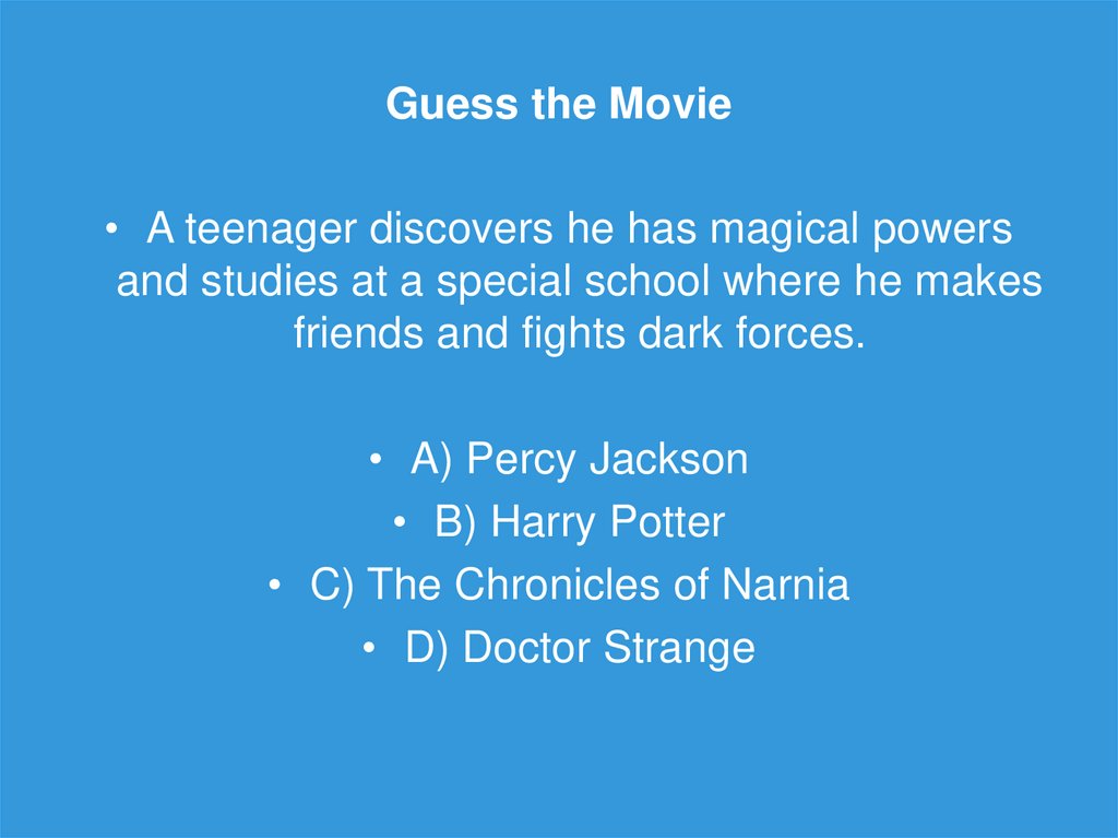 Guess the Movie• A teenager discovers he has magical powers