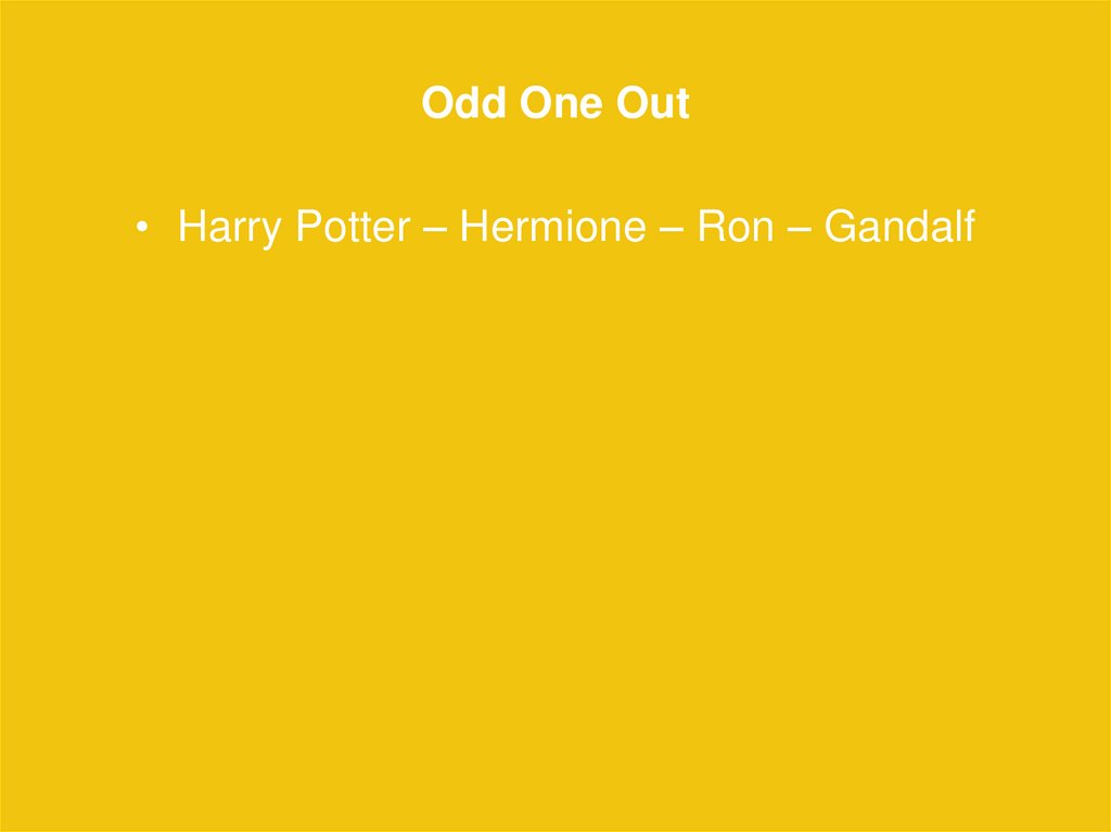 Odd One Out• Harry Potter – Hermione – Ron – Gandalf