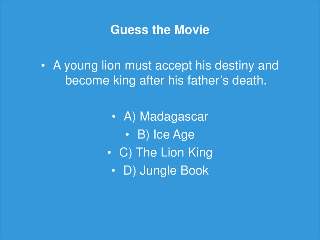 Guess the Movie• A young lion must accept his destiny and