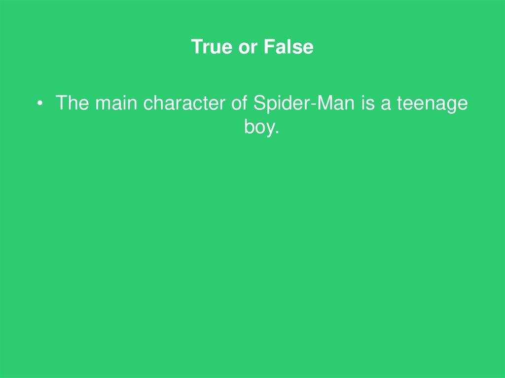 True or False• The main character of Spider-Man is a teenage