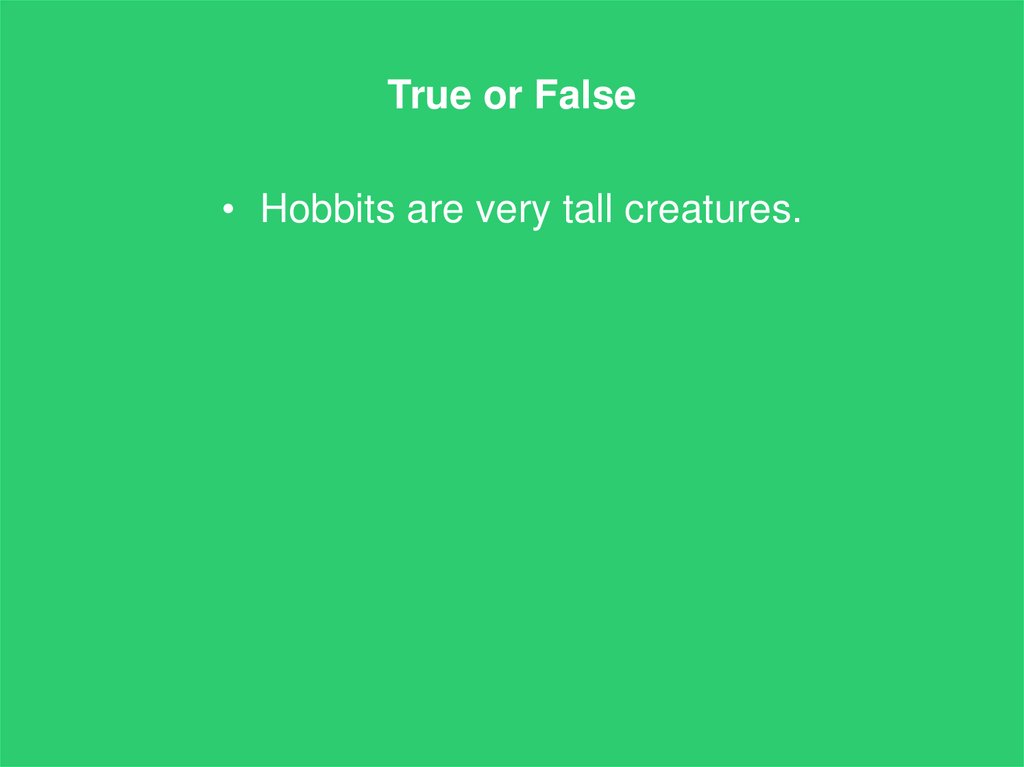 True or False• Hobbits are very tall creatures.