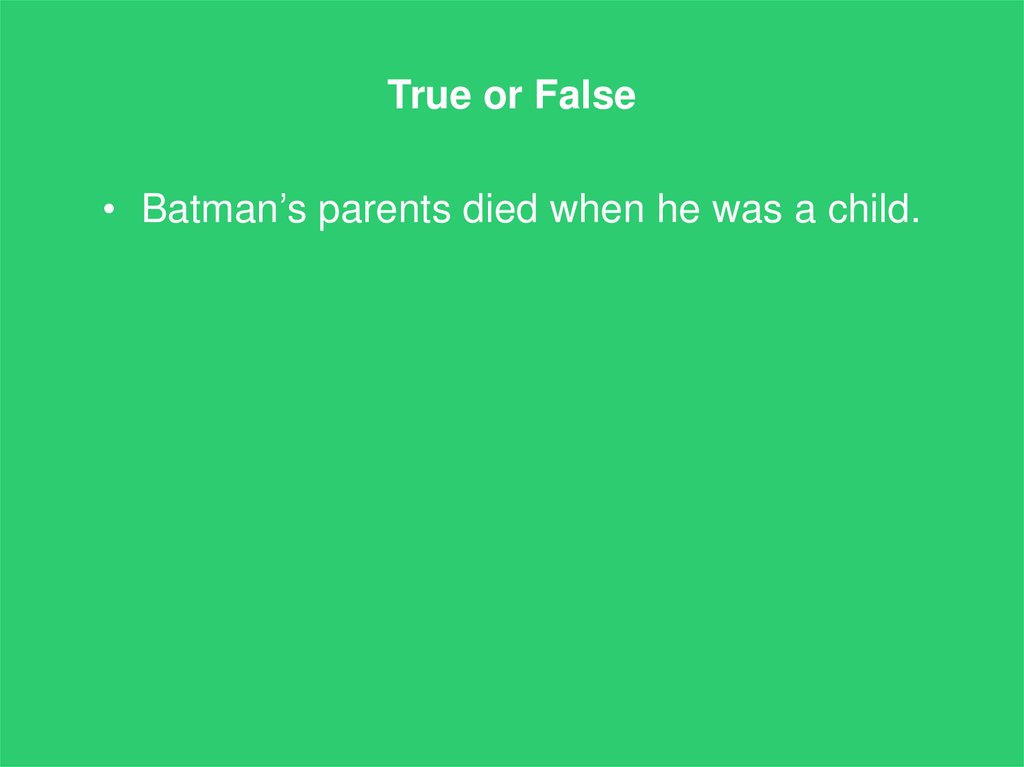 True or False• Batman’s parents died when he was a child.