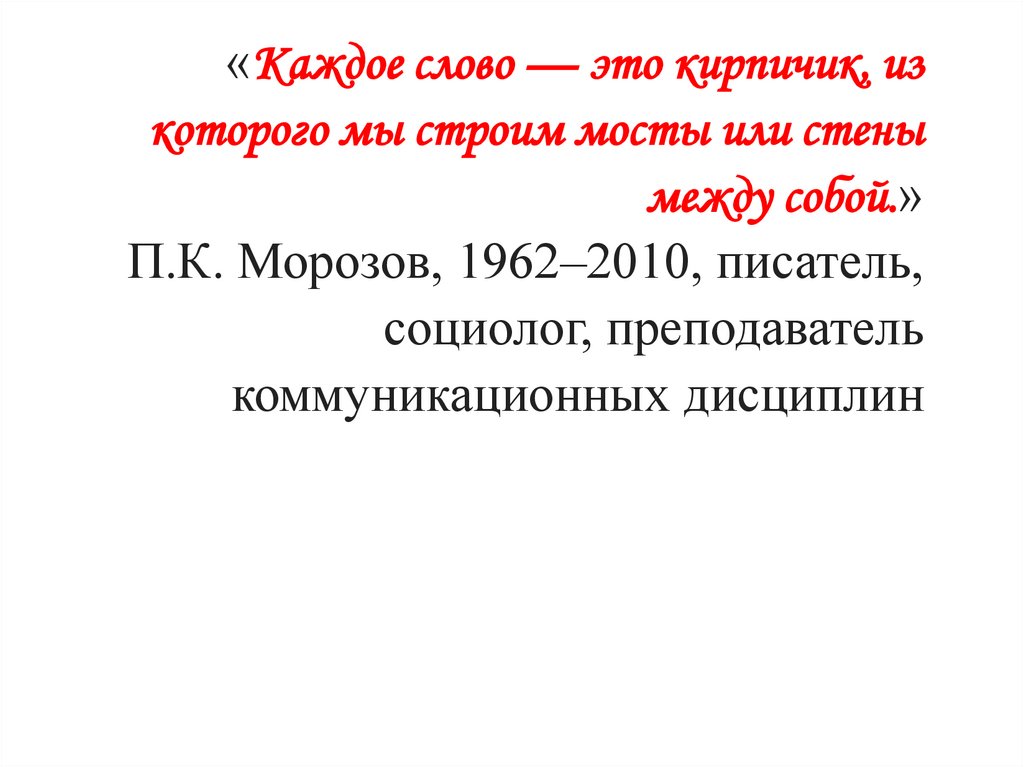 «Каждое слово — это кирпичик, изкоторого мы строим мосты или стены