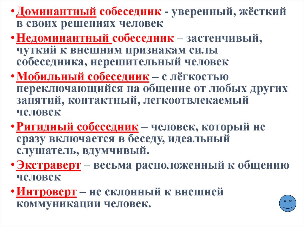 • Доминантный собеседник - уверенный, жёсткийв своих решениях человек