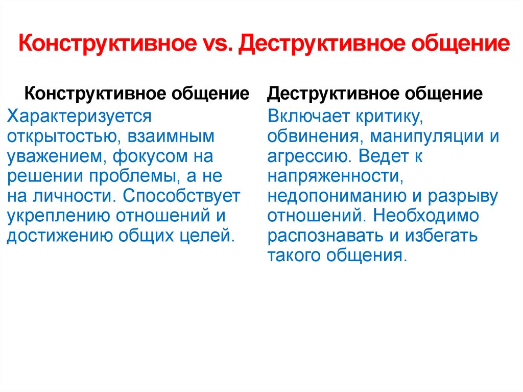 Конструктивное vs. Деструктивное общениеКонструктивное общение