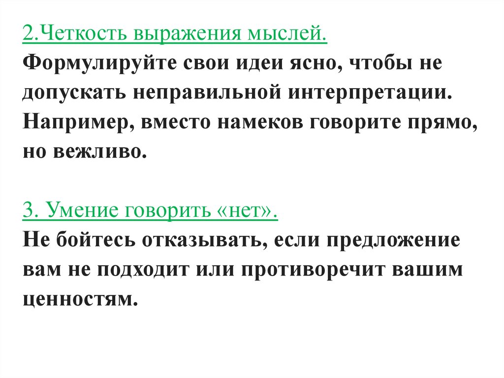 2.Четкость выражения мыслей.Формулируйте свои идеи ясно, чтобы не