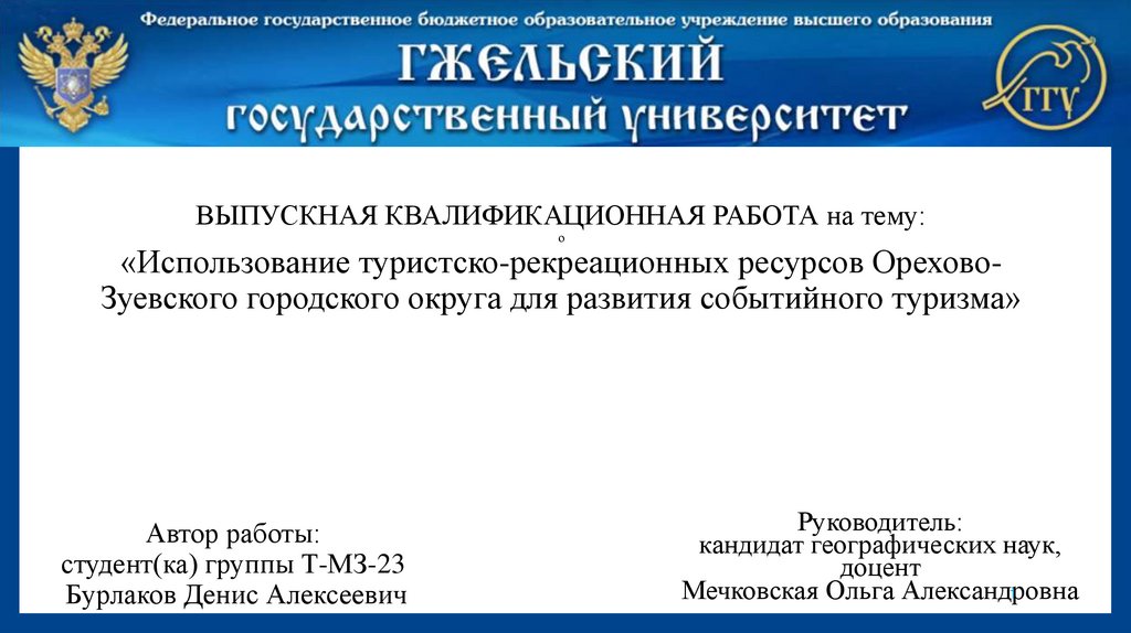 1. ВЫПУСКНАЯ КВАЛИФИКАЦИОННАЯ РАБОТА на тему: о «Использование туристско-рекреационных ресурсов Орехово-Зуевского городского