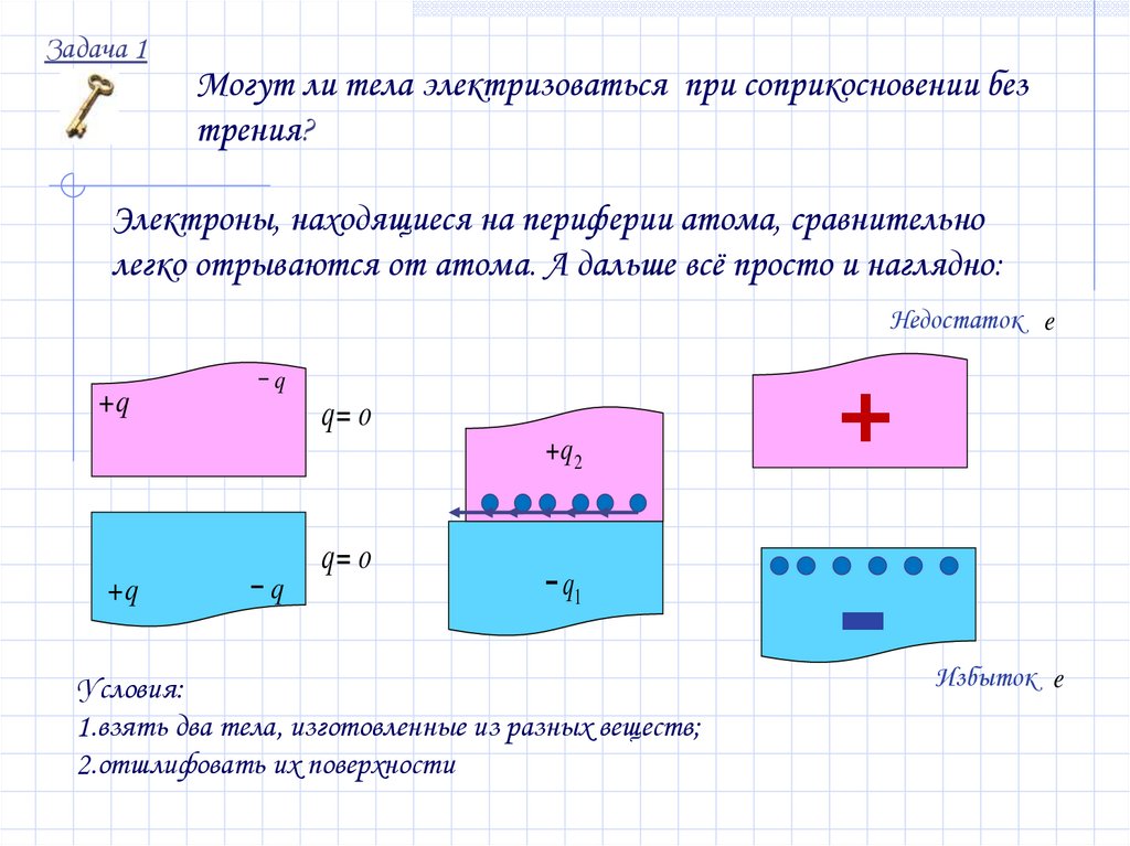 Задача 1Могут ли тела электризоваться при соприкосновении без