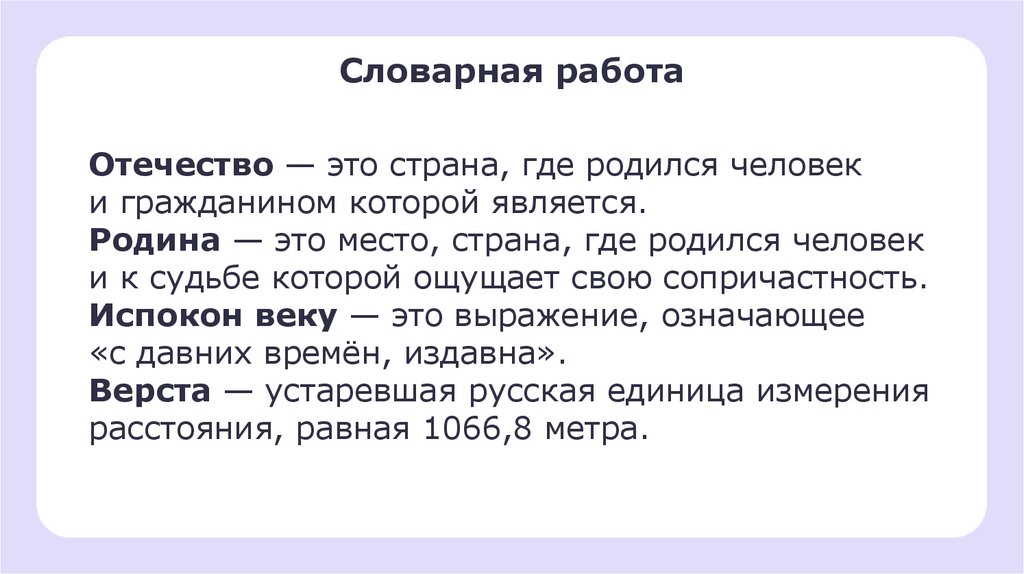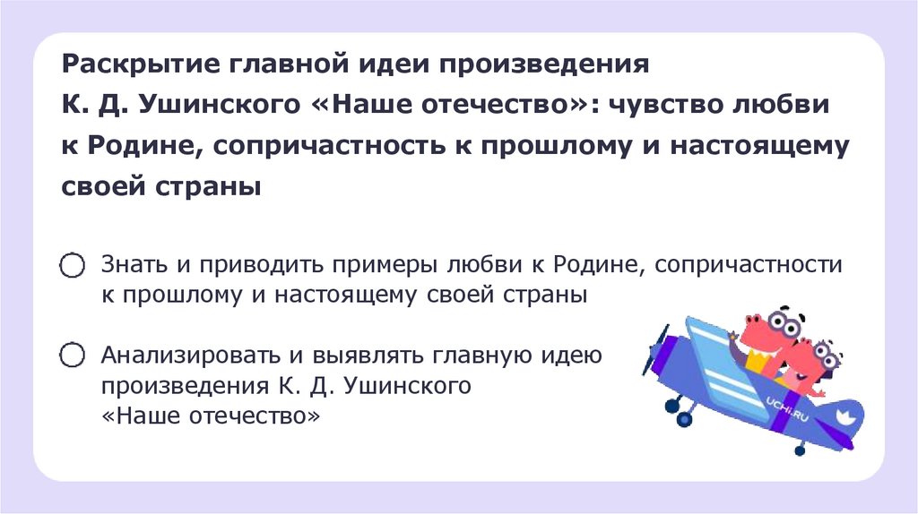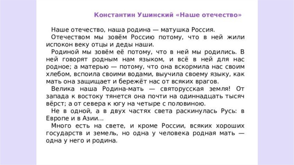 Раскрытие главной идеи произведенияК. Д. Ушинского «Наше отечество»: