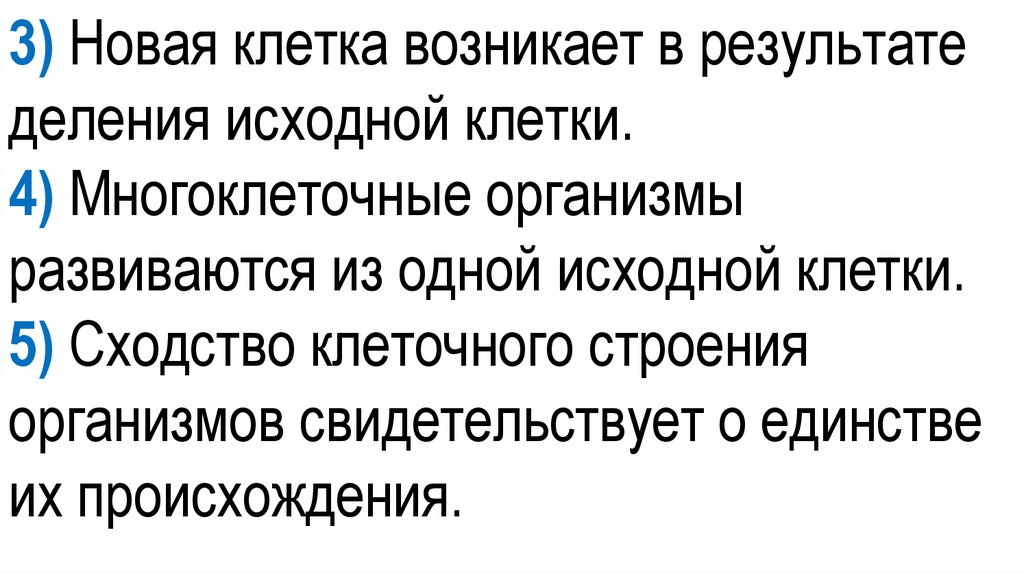 3) Новая клетка возникает в результатеделения исходной клетки.
