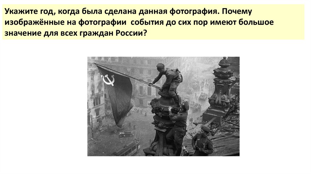 Укажите год, когда была сделана данная фотография. Почемуизображённые на фотографии события до сих пор имеют большое