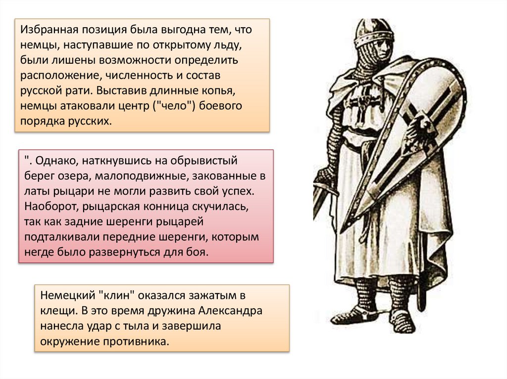 Избранная позиция была выгодна тем, чтонемцы, наступавшие по открытому льду,