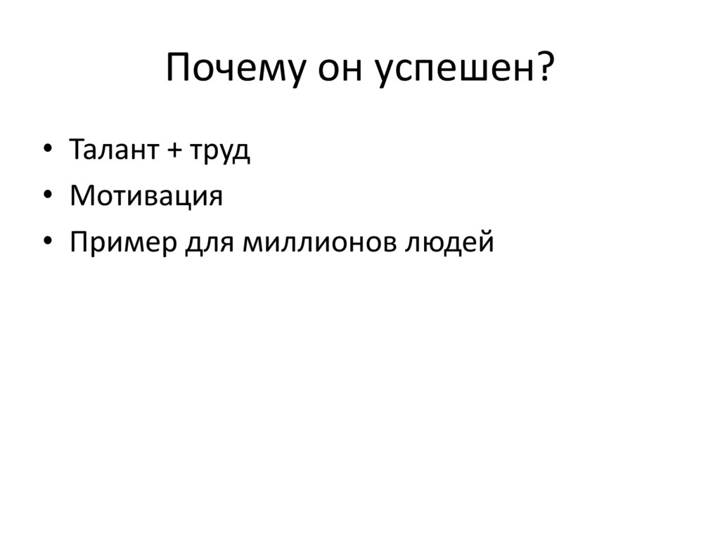 Почему он успешен?• Талант + труд